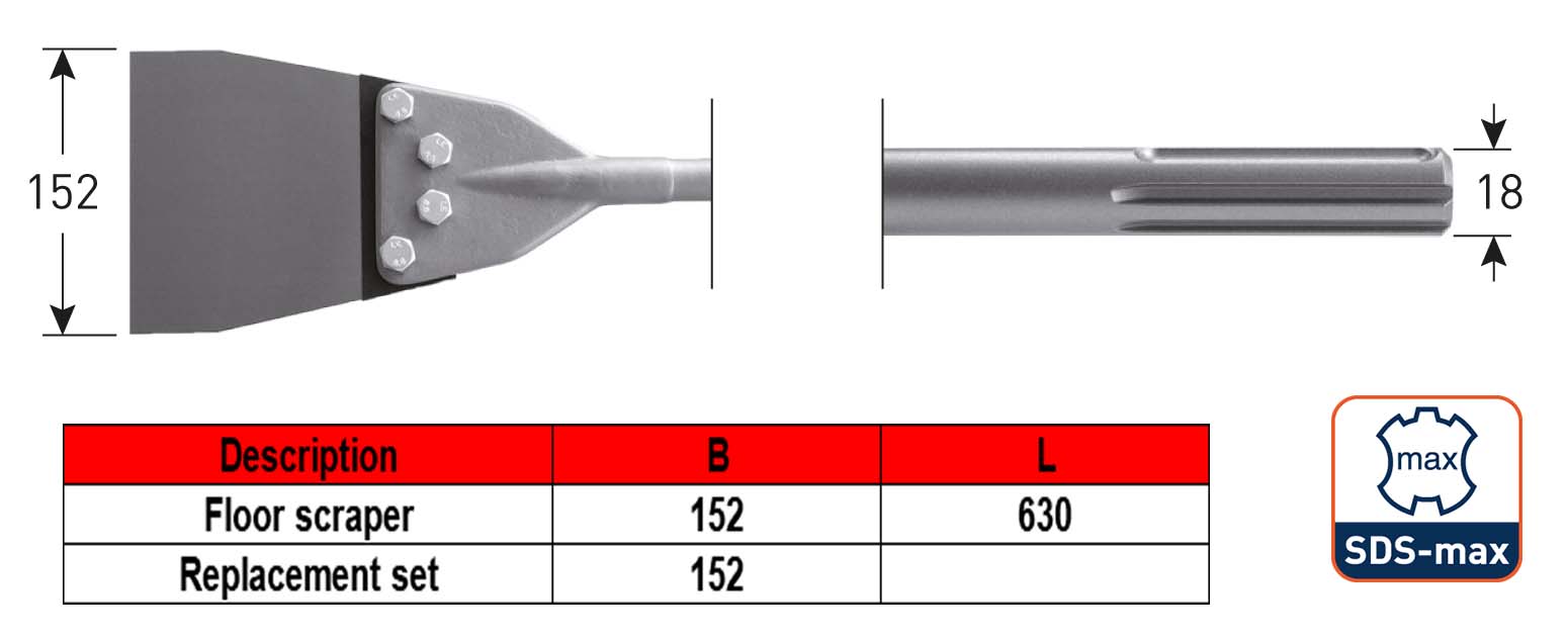 | Execution Floor scraper with replaceable blade. Replacement set contains one blade and matching fasteners. Application For wide removal of adhesive residues, for removal of carpet or cushioned vinyl. ![]() |