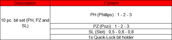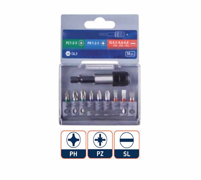 Bit-set, 1/4" (PH, PZ and SL), quick-lock |