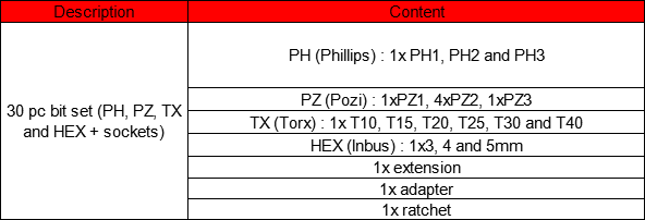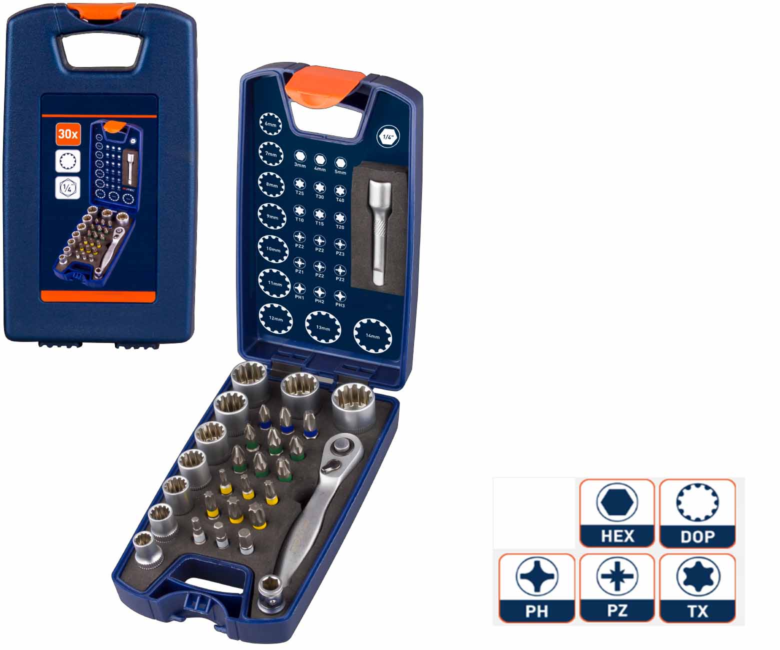 Bit-set, 1/4" (PH, PZ, TX and HEX + sockets) |