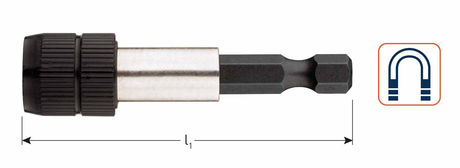 | Application Magnetic quick-change bitholder, suitable for all 1/4" size screwdriving bits. ![]() ![]() |