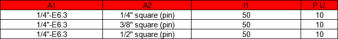 1/4” hex to 1/4" (3/8" or 1/2") square