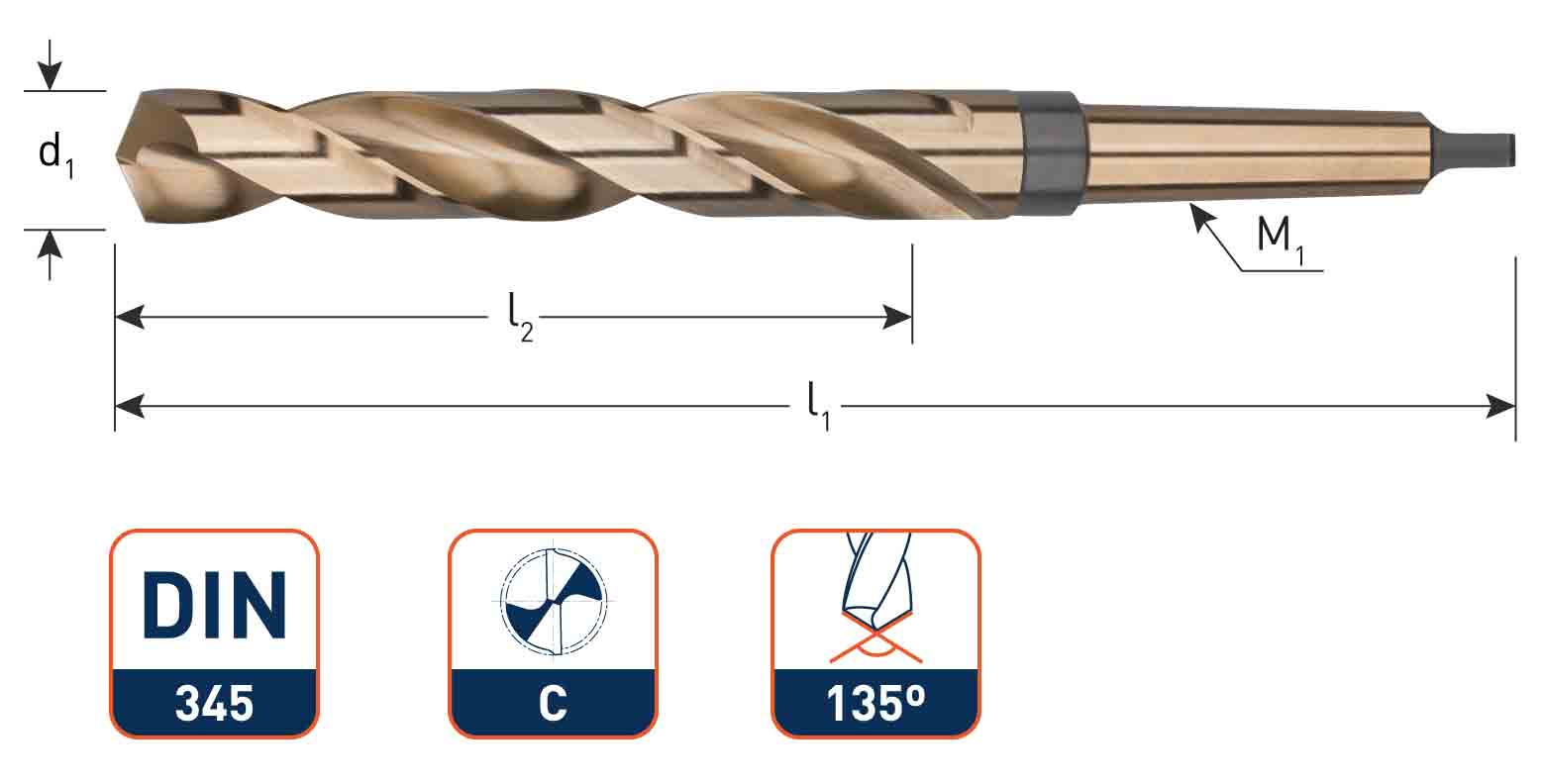 HSS-Co Morse Taper Drill Bit, DIN 345 |