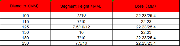The wide segments are specially designed for mortared expansion joints and slotting granite,marble,concrete,etc..These blades provide for fast easy removal of grouted or mortared joint materials.The blades with tungsten carbide inserts provide superior cutting performance and greatly extended blade life.![]() ![]() |