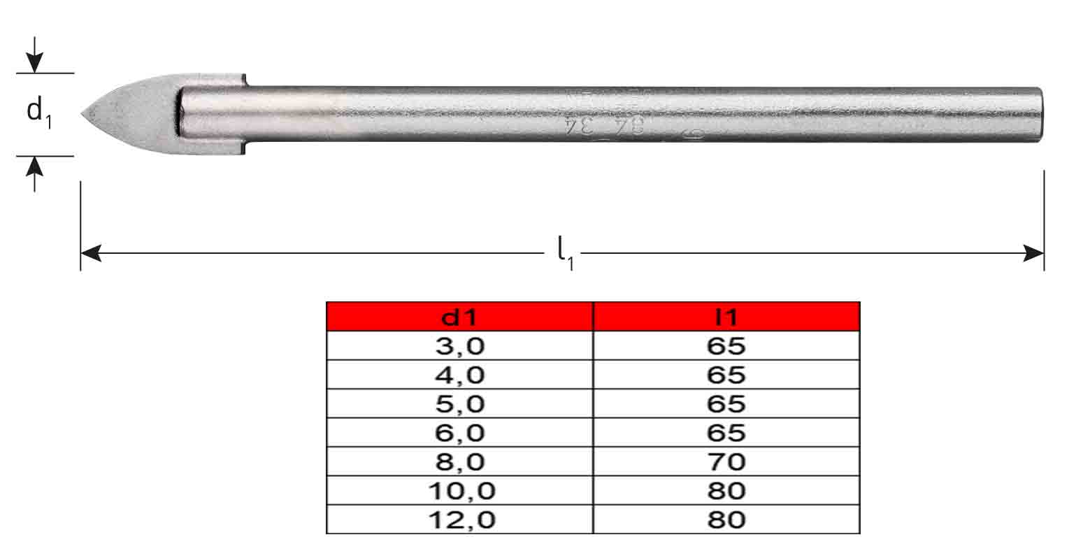 | Execution Optimized for drilling in glass due to special and precision ground carbide tip geometry. Low rpm and cooling with turpentine or water will improve the drilling results significantly. Application For use on glass, tiles, ceramics, mirror glass and porcelain. ![]() |