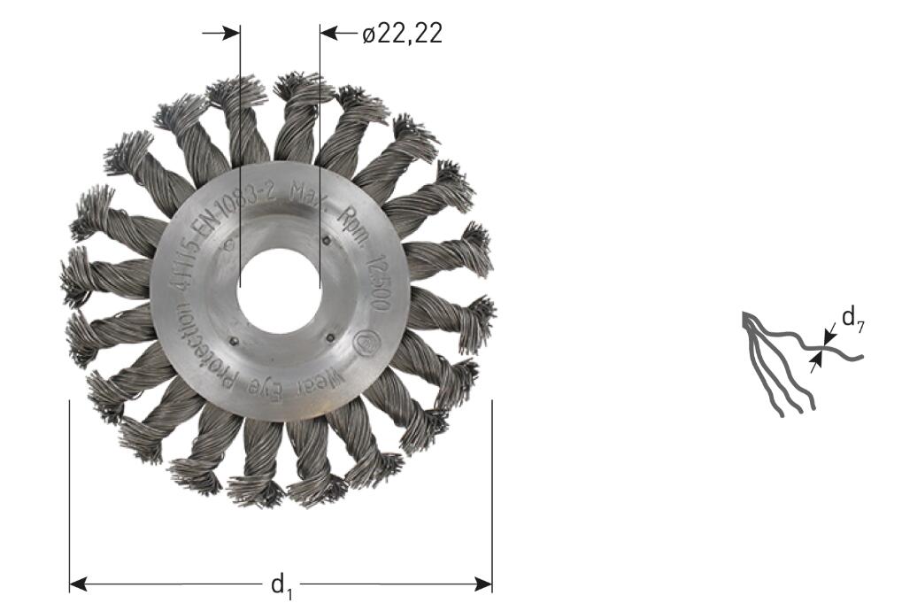 Wheel brush 22,2mm - Twist knot wire, steel |