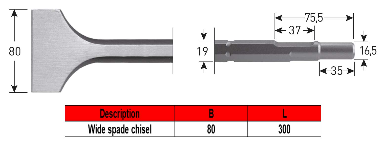 Spade Chisel 80mm, Hex 19mm / ø16,5x35