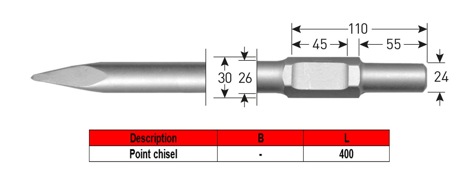 Point Chisels, Hex. 30mm / ø24x55