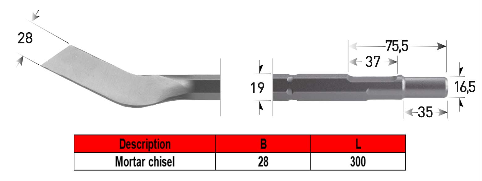 Mortar Chisels, Hex. 19mm / ø16,5x35