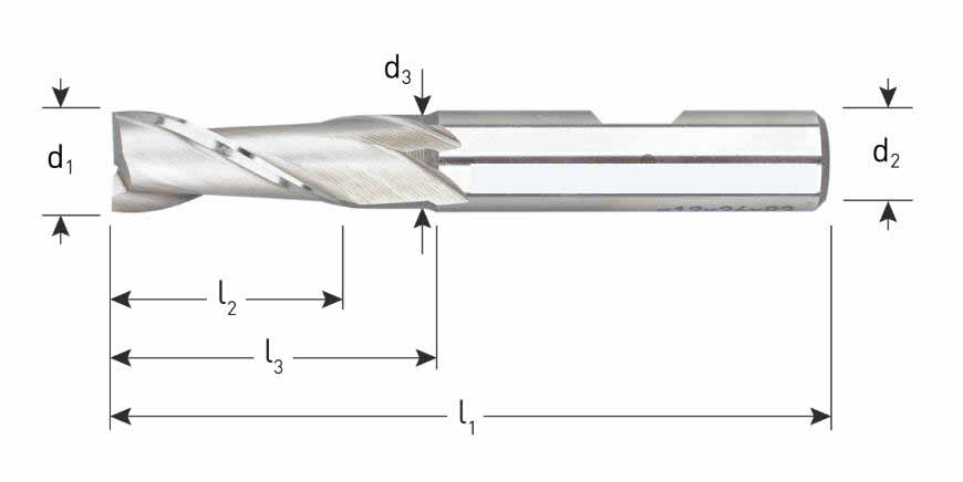 | Execution Short model according to DIN 327, type N, 30° helix angle, cylindrical shank with weldon according to DIN 1835-B. ![]() ![]() |