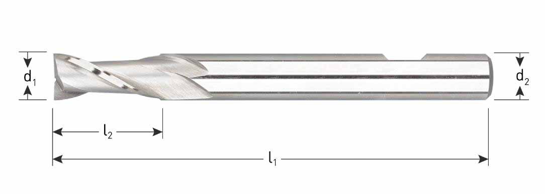 | Execution Long model according to DIN 844, type N, 30° helix angle, cylindrical shank with weldon according to DIN 1835-B. ![]() ![]() |