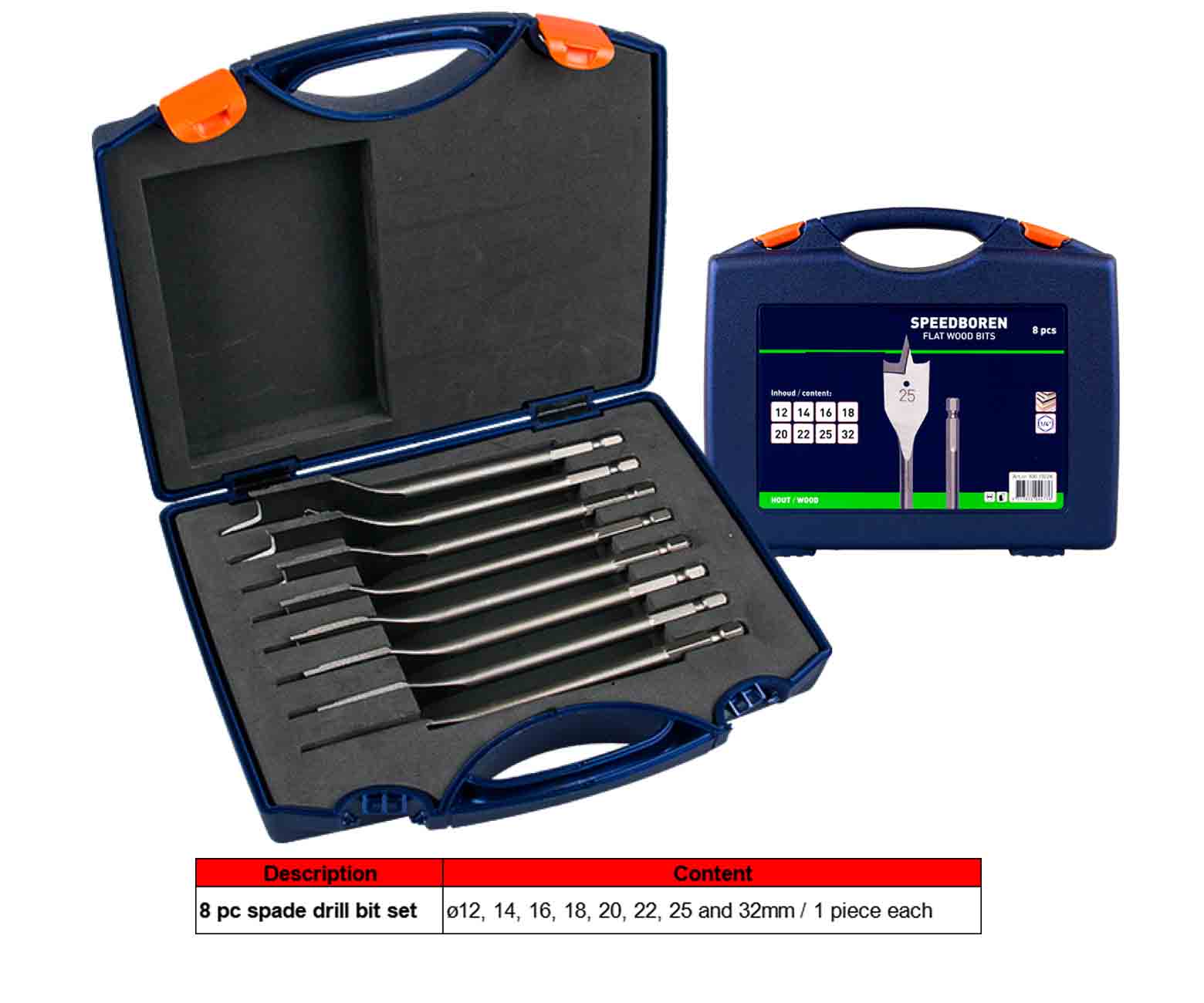 | Execution Spade drill bits, with ¼” hexagonal shank according to DIN 3126-E6.3, ground, hardened, with chip-breaker geometry. Hexagon shank avoids slipping in drill chuck. Application For drilling of soft and hard wood, particleboard, gypsum board etc. ![]() |