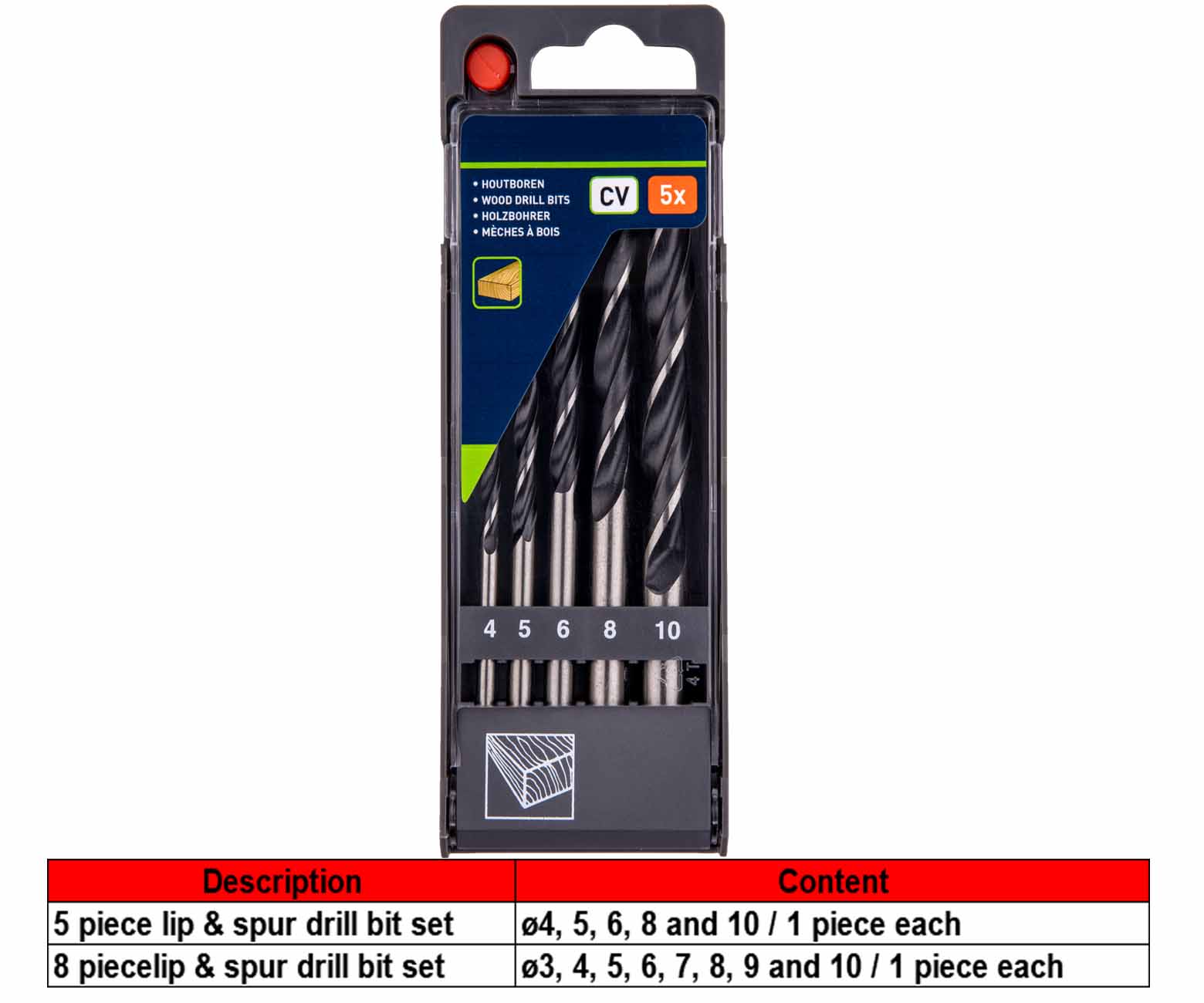 | Execution Lip & spur drill bit, made of chromium-vanadium steel. Application For drilling of soft and hard wood, blockboard and particleboard ![]() |