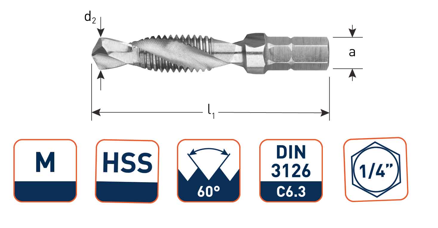 HSS Combi-drill-tap-bit 1/4"-bit shank, Metric |