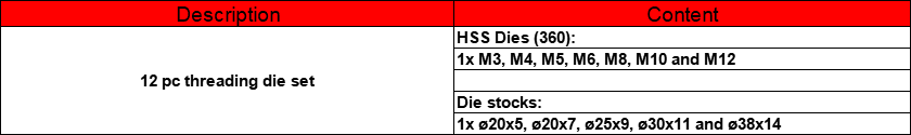 | Execution HSS round thread dies, according to DIN-EN 22568, for metric threads. Application For tapping of (alloyed) steels with tensile strength. ![]() ![]() |