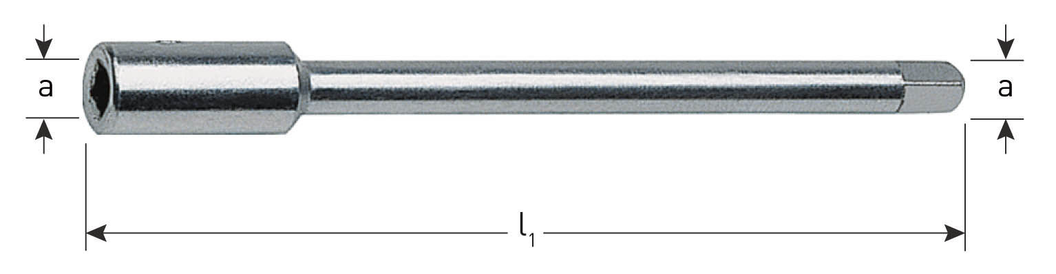 | Execution Tap extensions according to DIN 377, with squares according to DIN 10, cylindrical shank, tempered and precision ground. Application Increase reach length of (machine) taps. ![]() ![]() |