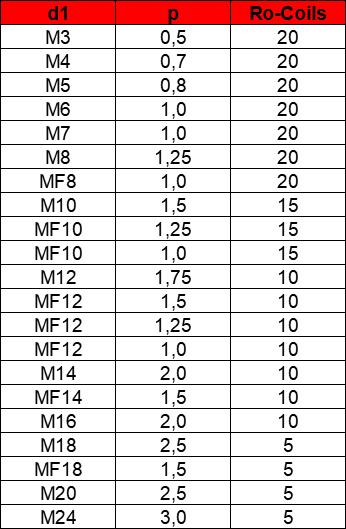 | Execution Ro-Coils (qty according to table) 1x matching drill bit (sets up to M12) 1x bottom tap 1x installation handle 1x tang breaker (sets up to M12) Application To repair a stripped threaded hole. The precise tolerance of the Ro-Coil system assures a better and stronger joint compared to the one with the original thread. Ro-Coil inserts are also used in new assemblies for stronger joints. ![]() ![]() |