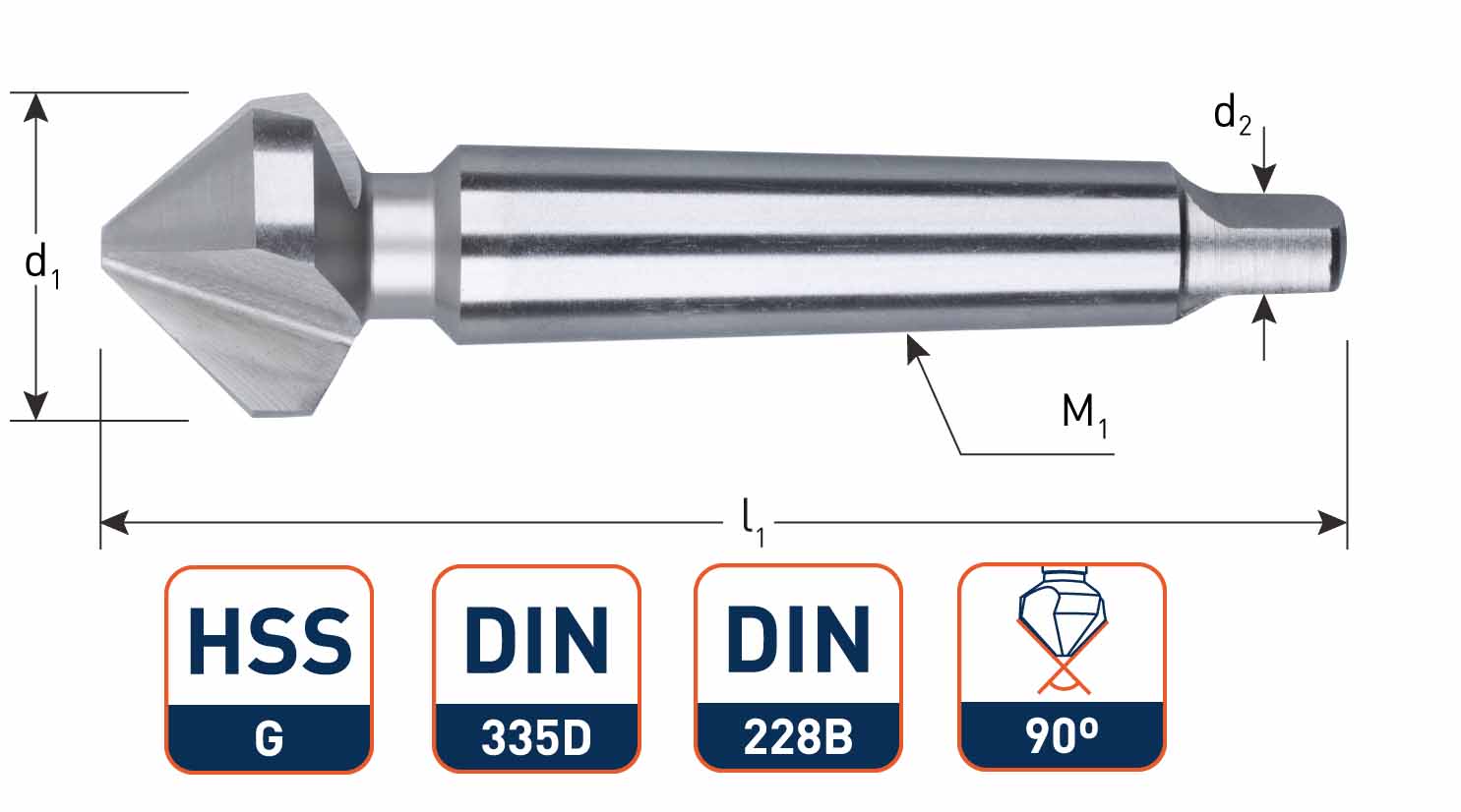 | Execution 90° HSS-G countersinks according to DIN 335-D, morse-taper shank according to DIN 228-B, robust design with 3 flutes. Due to CBN precision ground geometry very sharp and precise cutting edges. Application Ideal for deburring or countersinking of the most commonly used materials. ![]() ![]() |