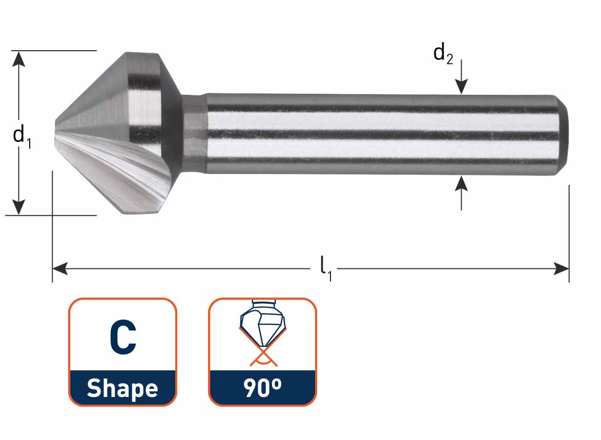 | Execution 90° HSS-G countersinks, shape C, cylindrical shank, robust design with 1 flute. Due to CBN precision ground geometry very sharp and precise cutting edges. Application Ideal for deburring or countersinking of the most commonly used materials. ![]() ![]() |